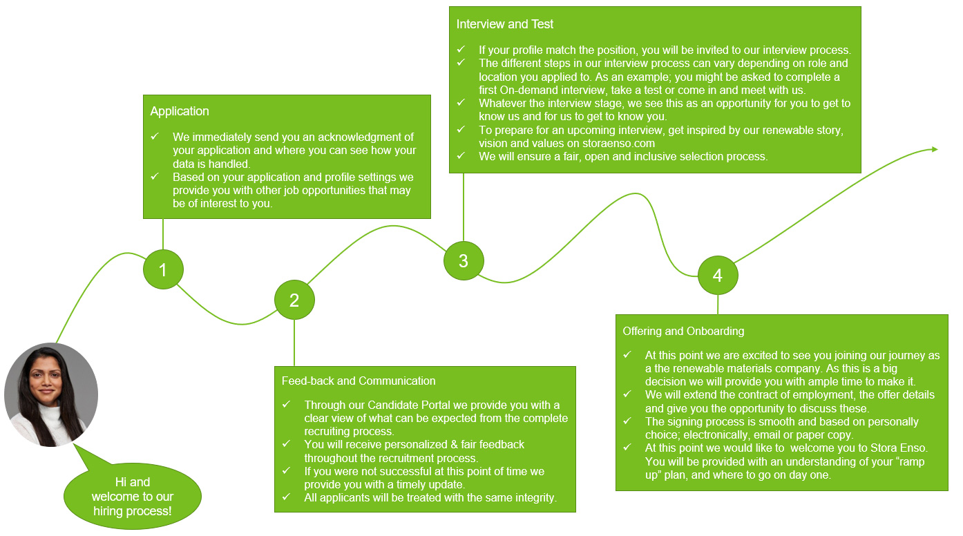 Stora Enso’s recruitment is built on the principle - “Transparency” which applies for both our internal and external candidate journey.