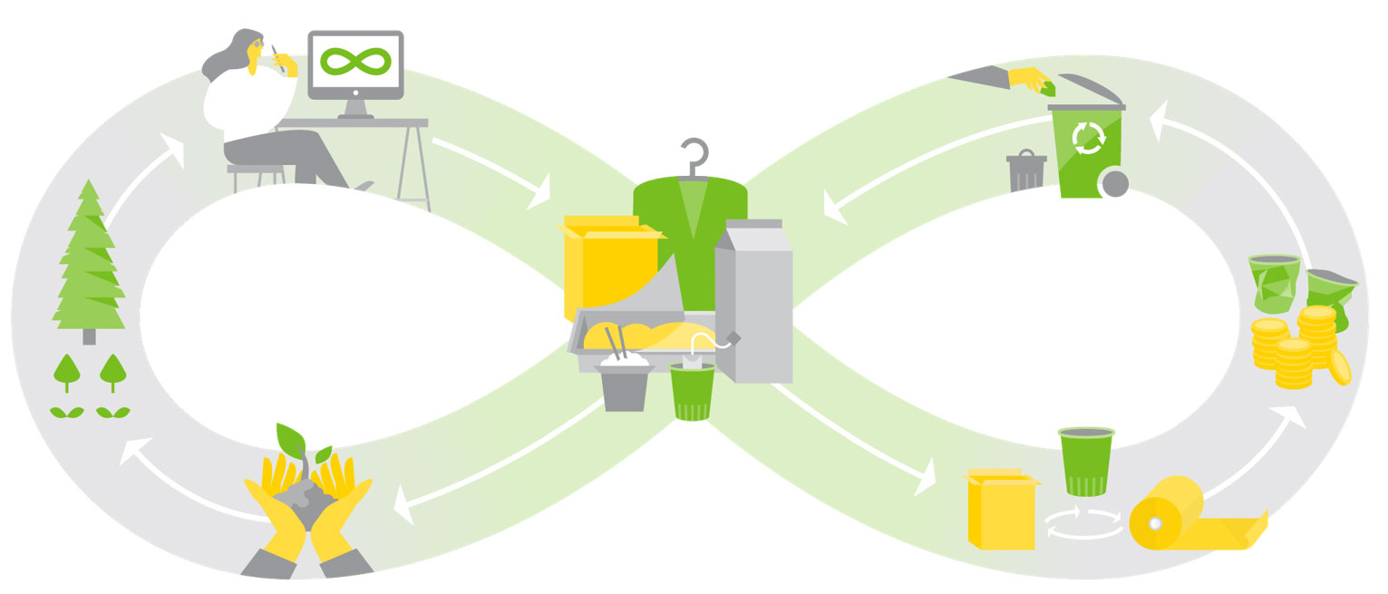 In a circular economy, waste is minimised as materials are reused and recycled to maximise environmental and financial value. We believe that a circular economy is only truly possible when raw materials are also circular – materials that can be renewed over and over again. This requires a transition towards a circular bioeconomy where fossil-based materials are replaced with renewable ones such as wood.