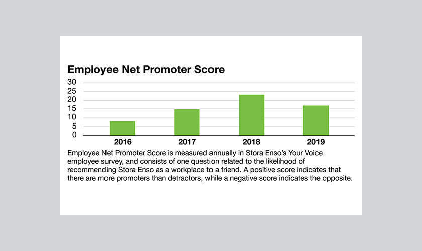 Stora Enso tekee vuosittain maailmanlaajuisen henkilöstökyselyn (Your Voice) kaikille työntekijöilleen. Vuonna 2019 kysely toteutettiin kahdeksannen kerran ja vastausprosentti oli 86% (88%). Kysely seuraa edistymistä alueilla, jotka vaikuttavat kykyymme toimia strategiamme mukaisesti, ohjata toimintaa ja priorisoida asioita. Se tukee myös esimiehiä ja tiimejä parantamaan jatkuvasti työtapojaan.